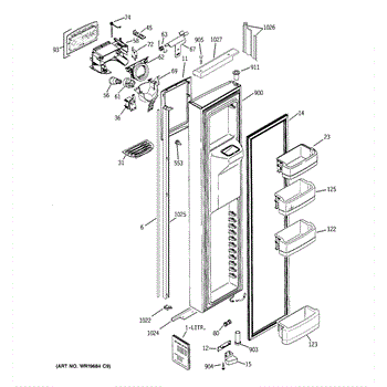 The Ice Door Assembly is an OEM part for GE refrigerators. It is integral to the ice dispenser system, controlling access to the ice chute. This component ensures the efficient delivery of ice cubes or crushed ice when activated and seals off the chute when not in use to maintain the freezer's temperature and prevent frost buildup.