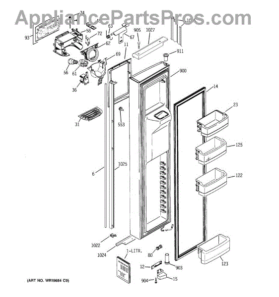 The Ice Door Assembly is an OEM part for GE refrigerators. It is integral to the ice dispenser system, controlling access to the ice chute. This component ensures the efficient delivery of ice cubes or crushed ice when activated and seals off the chute when not in use to maintain the freezer's temperature and prevent frost buildup.