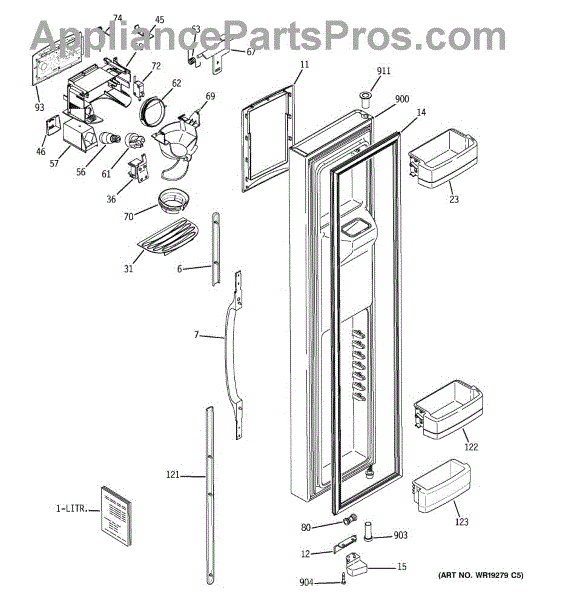 The Dispenser Housing Shield is an OEM part for GE refrigerators. This component plays a crucial role in protecting the internal mechanisms of the water and ice dispenser from damage and contamination. It ensures that the dispenser operates efficiently and maintains hygiene standards by shielding the delicate internal parts from debris and moisture.