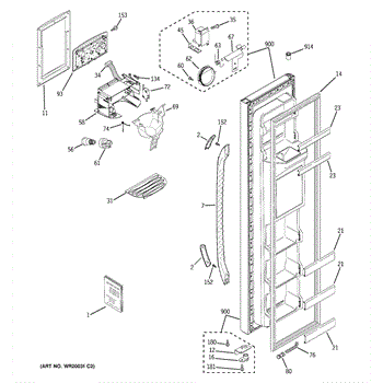 Parts for Ge GSE20JEWGFWW: 01 - Freezer Door Parts
