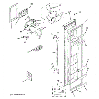 The Door Recess Spring is an OEM replacement part for GE side-by-side refrigerators. It sits within the icemaker door frame to control movement and allow smooth closing/opening of the access point.