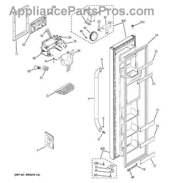 The Door Recess Spring is an OEM replacement part for GE side-by-side refrigerators. It sits within the icemaker door frame to control movement and allow smooth closing/opening of the access point.
