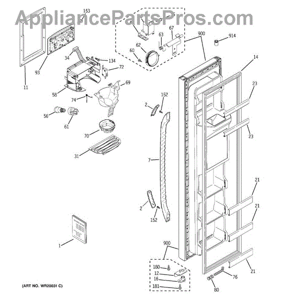 The Door Recess Spring is an OEM replacement part for GE side-by-side refrigerators. It sits within the icemaker door frame to control movement and allow smooth closing/opening of the access point.