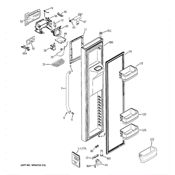 The Ice Door Assembly is an OEM part for GE refrigerators. It is integral to the ice dispenser system, controlling access to the ice chute. This component ensures the efficient delivery of ice cubes or crushed ice when activated and seals off the chute when not in use to maintain the freezer's temperature and prevent frost buildup.