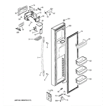 The Ice Door Assembly is an OEM part for GE refrigerators. It is integral to the ice dispenser system, controlling access to the ice chute. This component ensures the efficient delivery of ice cubes or crushed ice when activated and seals off the chute when not in use to maintain the freezer's temperature and prevent frost buildup.