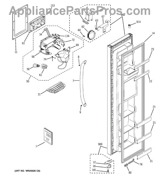 The Dispenser Housing Shield is an OEM part for GE refrigerators. This component plays a crucial role in protecting the internal mechanisms of the water and ice dispenser from damage and contamination. It ensures that the dispenser operates efficiently and maintains hygiene standards by shielding the delicate internal parts from debris and moisture.