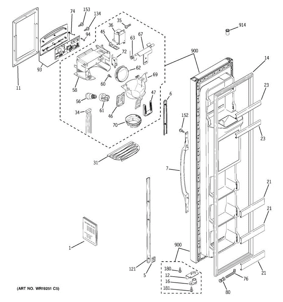 The Dispenser Housing Shield is an OEM part for GE refrigerators. This component plays a crucial role in protecting the internal mechanisms of the water and ice dispenser from damage and contamination. It ensures that the dispenser operates efficiently and maintains hygiene standards by shielding the delicate internal parts from debris and moisture.