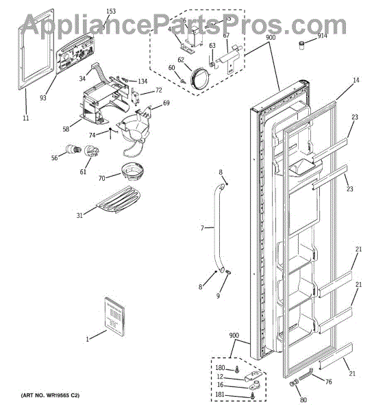 The Dispenser Lever is an OEM part for GE refrigerators. It is located on the front panel of the refrigerator and is responsible for activating the dispenser mechanism. When pressed, it engages the internal mechanisms to dispense ice or water into a glass or container.
