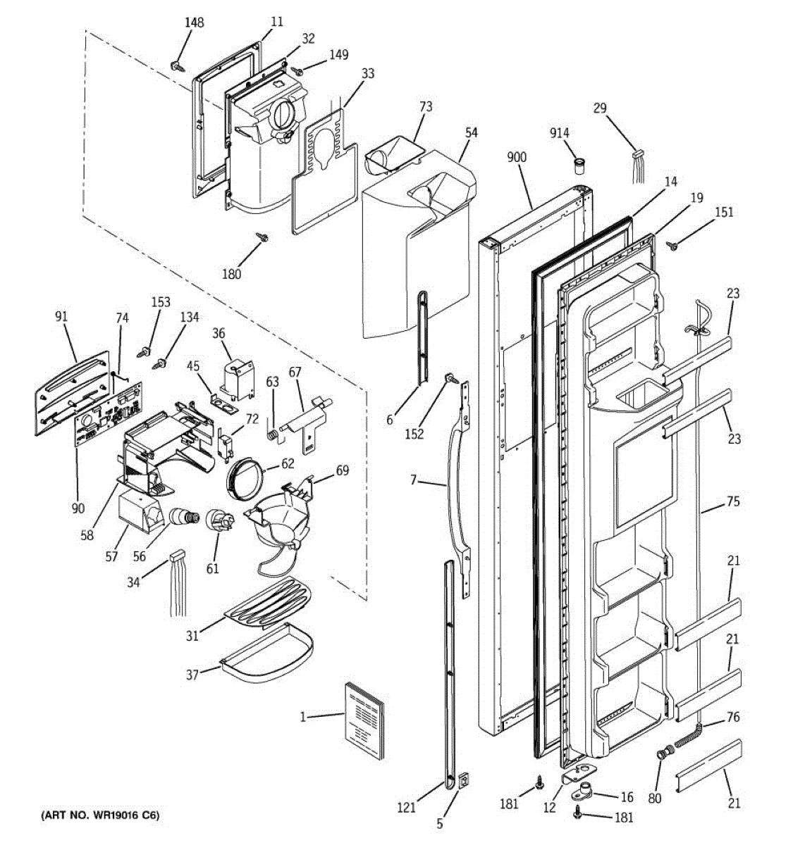 The Door Handle is an OEM part for GE refrigerators. This part provides a secure and comfortable grip for opening and closing the refrigerator door.