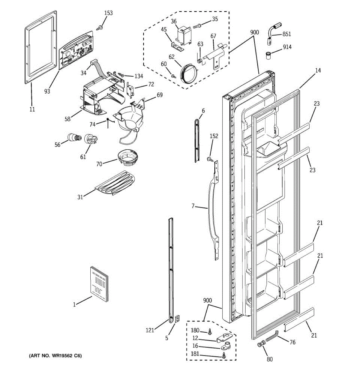 Parts for Ge GSH25JFRHWW: 01 - Freezer Door Parts