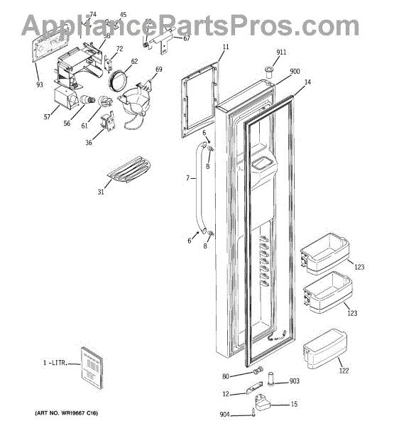 The Refrigerator Dispenser Arm Kit is an OEM component for GE French door refrigerator models. This kit contains the arm mechanism responsible for dispensing ice and water from the external dispenser tap. Proper functioning of the dispenser arm allows for effortless access to ice and water directly from the refrigerator door. Over time, cold temperatures, mineral deposits, and high usage can cause mechanical failure. Symptoms of a problematic refrigerator dispenser arm kit include: