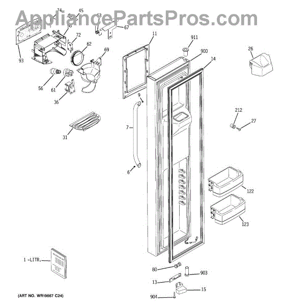 The Refrigerator Dispenser Arm Kit is an OEM component for GE French door refrigerator models. This kit contains the arm mechanism responsible for dispensing ice and water from the external dispenser tap. Proper functioning of the dispenser arm allows for effortless access to ice and water directly from the refrigerator door. Over time, cold temperatures, mineral deposits, and high usage can cause mechanical failure. Symptoms of a problematic refrigerator dispenser arm kit include: