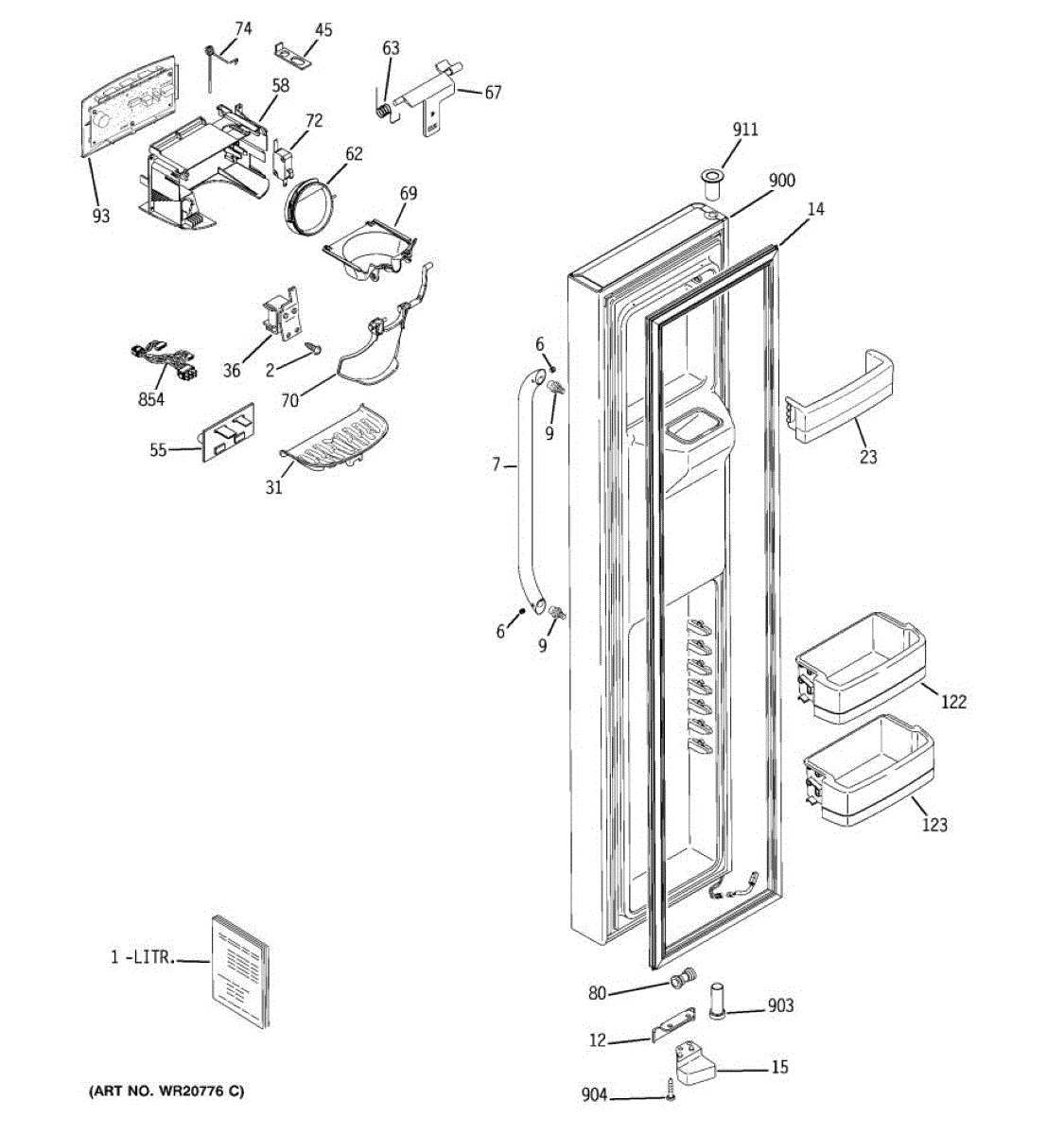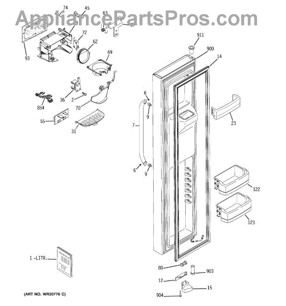 Ice dispenser door assembly seals the ice chute opening on your refrigerator. Replace if cracked, warped, or the rubber gasket is damaged and leaking air.