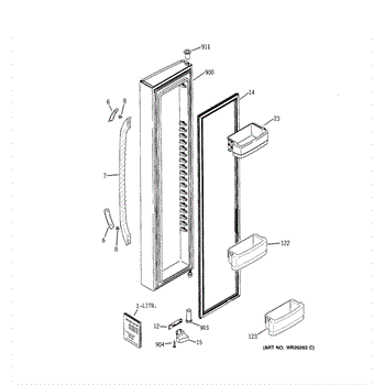 The Freezer Door Gasket is an OEM replacement part for GE refrigerators. It creates a tight seal around the perimeter of the freezer door frame.