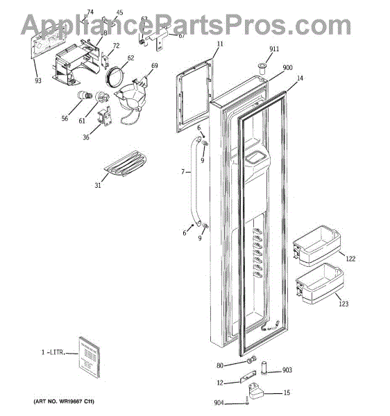 The Refrigerator Dispenser Arm Kit is an OEM component for GE French door refrigerator models. This kit contains the arm mechanism responsible for dispensing ice and water from the external dispenser tap. Proper functioning of the dispenser arm allows for effortless access to ice and water directly from the refrigerator door. Over time, cold temperatures, mineral deposits, and high usage can cause mechanical failure. Symptoms of a problematic refrigerator dispenser arm kit include: