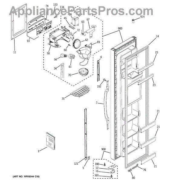 Plastic shield that covers the water and ice dispenser housing on your refrigerator door. Replace if cracked, warped, or broken from impact or heat damage.