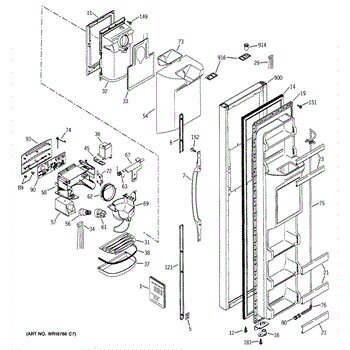 The Door Recess Spring is an OEM replacement part for GE side-by-side refrigerators. It sits within the icemaker door frame to control movement and allow smooth closing/opening of the access point.