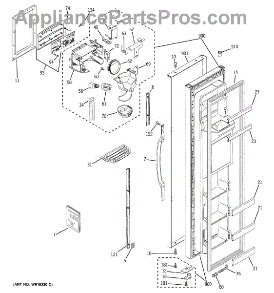 The Dispenser Housing Shield is an OEM part for GE refrigerators. This component plays a crucial role in protecting the internal mechanisms of the water and ice dispenser from damage and contamination. It ensures that the dispenser operates efficiently and maintains hygiene standards by shielding the delicate internal parts from debris and moisture.
