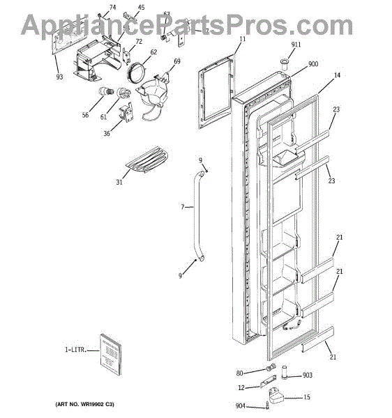 This front door shelf is a replacement freezer door bin that restores lost door storage and helps keep frozen items organized and accessible. Built to match the original fit and function for a secure door storage solution. What it does: