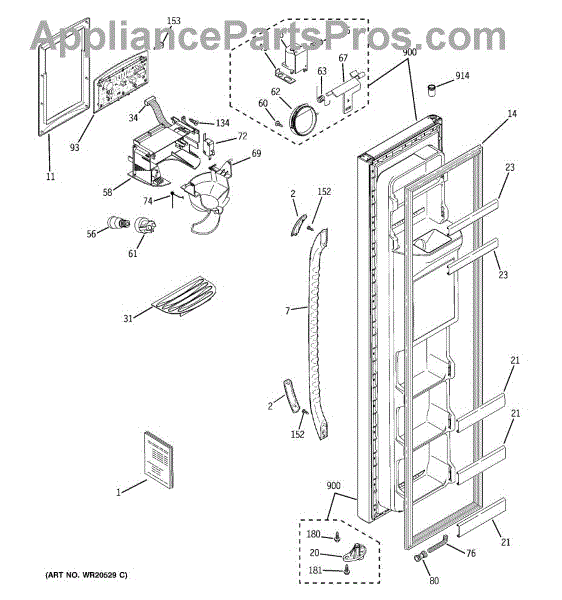 Parts for Ge GSS25JETJWW: 01 - Freezer Door Parts