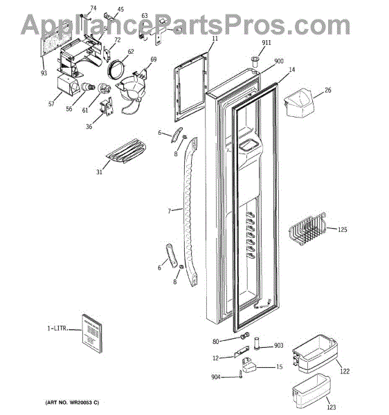 The Ice Door Assembly is an OEM part for GE refrigerators. It is integral to the ice dispenser system, controlling access to the ice chute. This component ensures the efficient delivery of ice cubes or crushed ice when activated and seals off the chute when not in use to maintain the freezer's temperature and prevent frost buildup.
