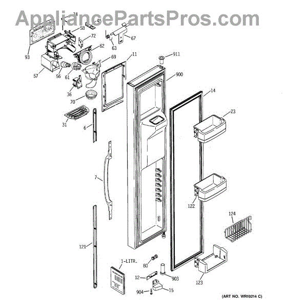 The Dispenser Lever is an OEM part for GE refrigerators. It is located on the front panel of the refrigerator and is responsible for activating the dispenser mechanism. When pressed, it engages the internal mechanisms to dispense ice or water into a glass or container.