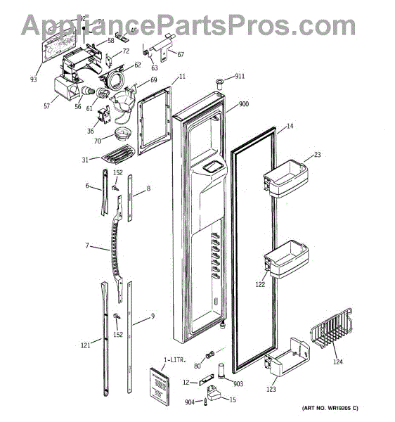 The Dispenser Lever is an OEM part for GE refrigerators. It is located on the front panel of the refrigerator and is responsible for activating the dispenser mechanism. When pressed, it engages the internal mechanisms to dispense ice or water into a glass or container.