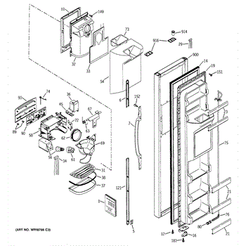 The Door Recess Spring is an OEM replacement part for GE side-by-side refrigerators. It sits within the icemaker door frame to control movement and allow smooth closing/opening of the access point.