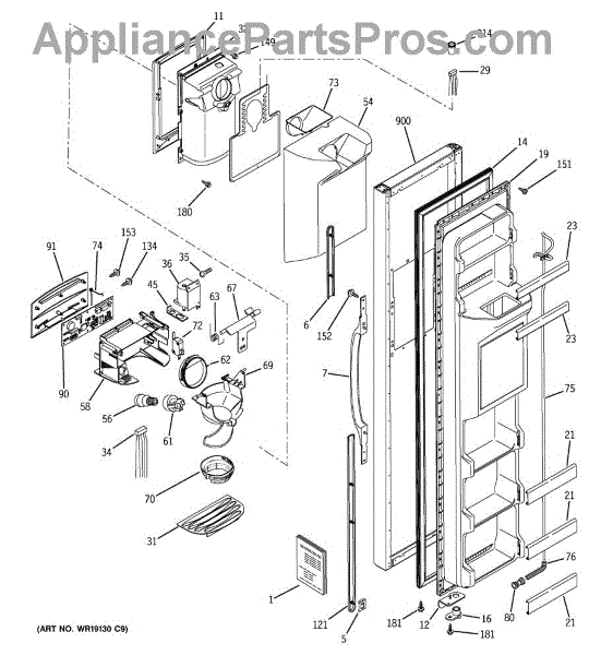 Parts for Ge GSS25QGMCCC: 04 - Freezer Door Parts