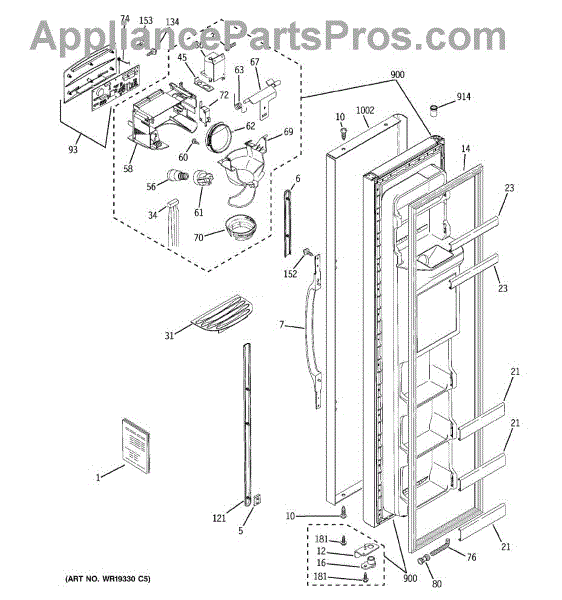 The Dispenser Housing Shield is an OEM part for GE refrigerators. This component plays a crucial role in protecting the internal mechanisms of the water and ice dispenser from damage and contamination. It ensures that the dispenser operates efficiently and maintains hygiene standards by shielding the delicate internal parts from debris and moisture.