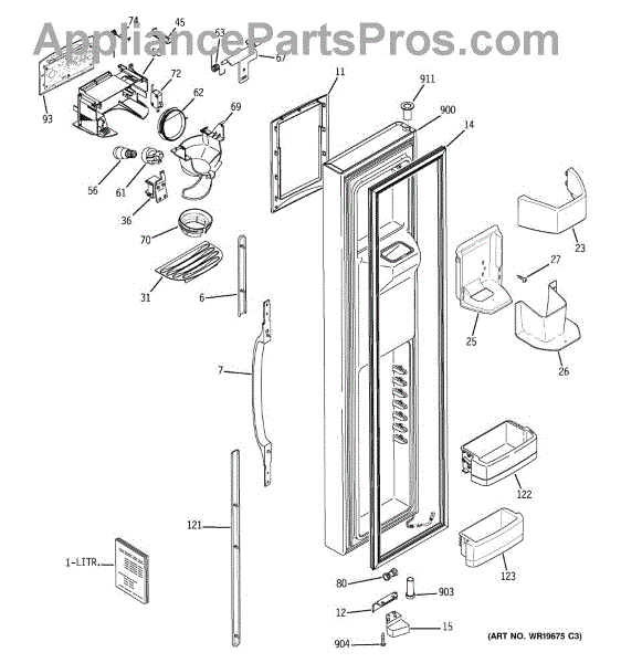 The Ice Door Assembly is an OEM part for GE refrigerators. It is integral to the ice dispenser system, controlling access to the ice chute. This component ensures the efficient delivery of ice cubes or crushed ice when activated and seals off the chute when not in use to maintain the freezer's temperature and prevent frost buildup.