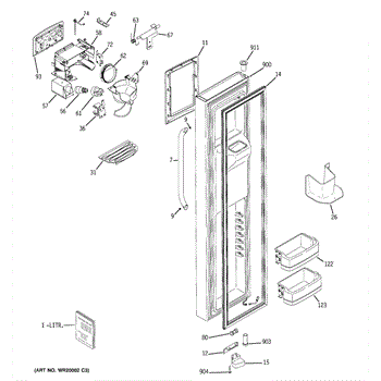 The Ice Door Assembly is an OEM part for GE refrigerators. It is integral to the ice dispenser system, controlling access to the ice chute. This component ensures the efficient delivery of ice cubes or crushed ice when activated and seals off the chute when not in use to maintain the freezer's temperature and prevent frost buildup.