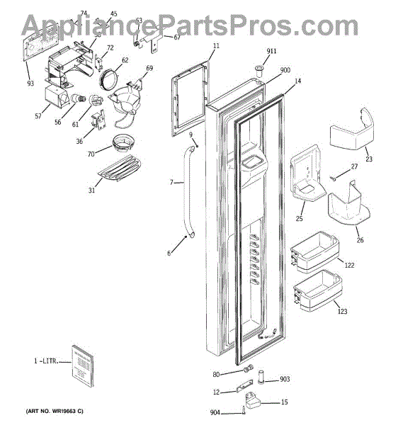 The Dispenser Housing Shield is an OEM part for GE refrigerators. This component plays a crucial role in protecting the internal mechanisms of the water and ice dispenser from damage and contamination. It ensures that the dispenser operates efficiently and maintains hygiene standards by shielding the delicate internal parts from debris and moisture.