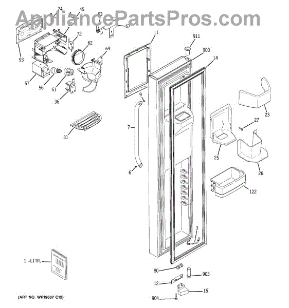 The Refrigerator Dispenser Arm Kit is an OEM component for GE French door refrigerator models. This kit contains the arm mechanism responsible for dispensing ice and water from the external dispenser tap. Proper functioning of the dispenser arm allows for effortless access to ice and water directly from the refrigerator door. Over time, cold temperatures, mineral deposits, and high usage can cause mechanical failure. Symptoms of a problematic refrigerator dispenser arm kit include: