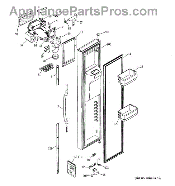 Parts for Ge GSS25YGNAWW: 01 - Freezer Door Parts