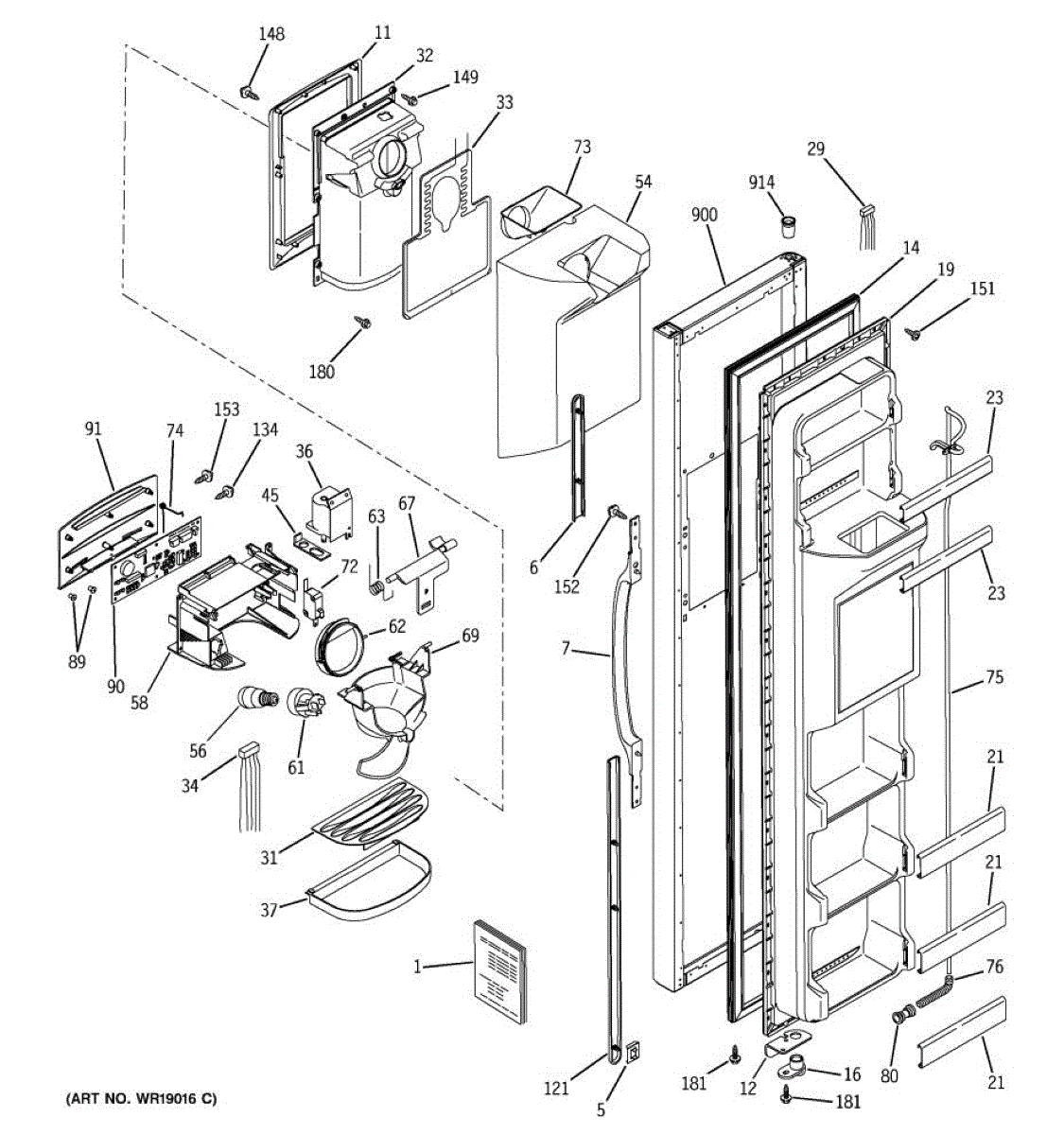 The Door Handle is an OEM part for GE refrigerators. This part provides a secure and comfortable grip for opening and closing the refrigerator door.