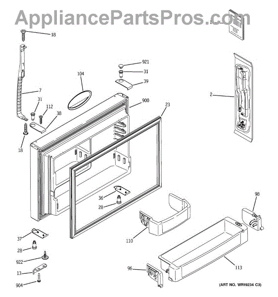 A replacement bottom door cap that restores the finished edge and support at the lower corner of the appliance door. Keeps the door looking complete and helps protect the hinge area from damage. What it does