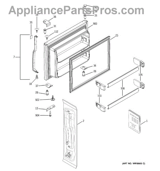 Parts for Ge GTS22FBPARWW: 01 - Freezer Door Parts