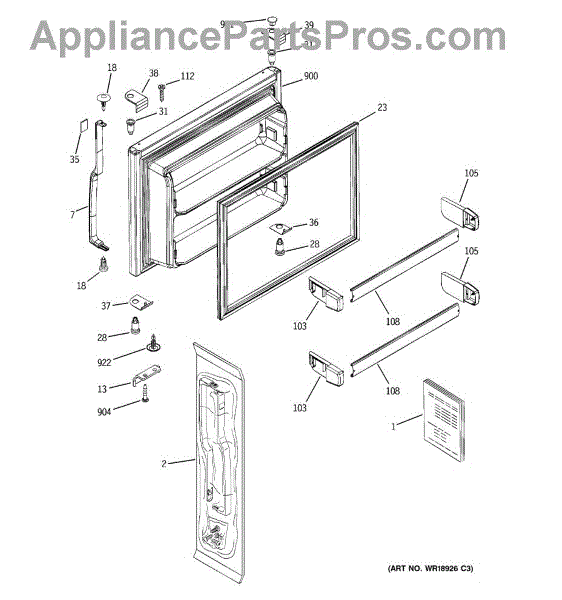 Parts for Ge GTS22IBMBRWW: 01 - Freezer Door Parts