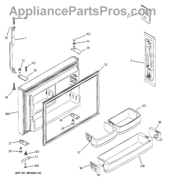 Parts for Ge GTS22KBMBRWW: 01 - Freezer Door Parts