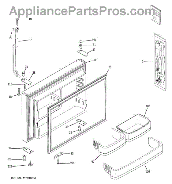 A replacement bottom door cap that restores the finished edge and support at the lower corner of the appliance door. Keeps the door looking complete and helps protect the hinge area from damage. What it does