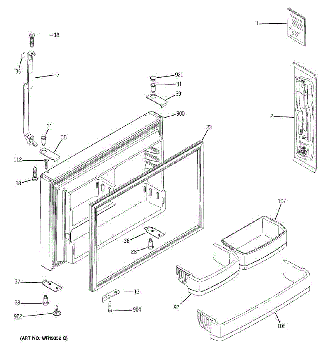 This small door handle assembly (22 in) replaces a damaged or worn refrigerator/freezer door pull to restore a secure grip and smooth opening. Fits inline with factory trim for a clean, original appearance. What it does: