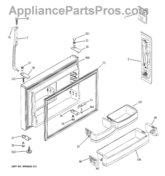 A replacement bottom door cap that restores the finished edge and support at the lower corner of the appliance door. Keeps the door looking complete and helps protect the hinge area from damage. What it does
