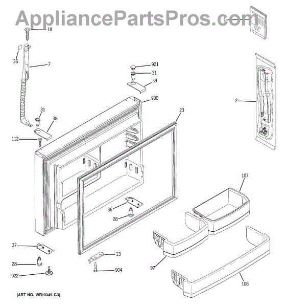 Parts for Ge GTS22QBPARWW: 01 - Freezer Door Parts