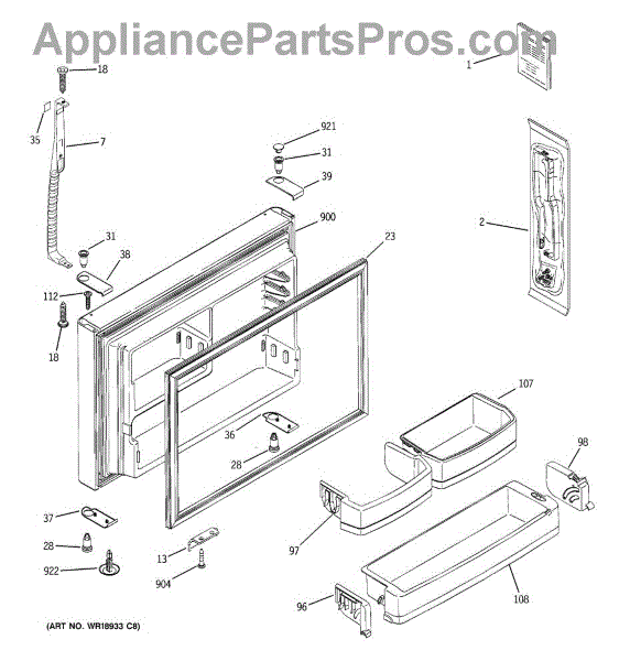 Parts for Ge GTS22UBMARWW: 01 - Freezer Door Parts