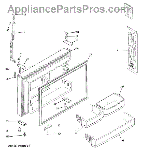 Parts for Ge GTS22UBPARBB: 01 - Freezer Door Parts