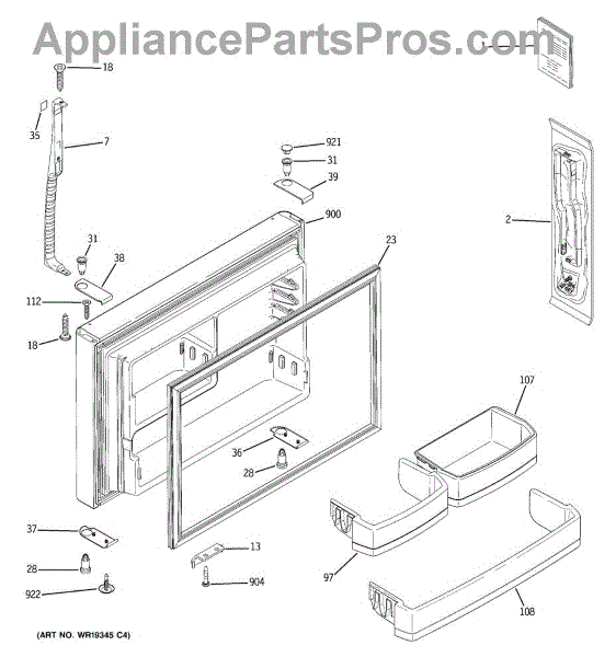 Parts for Ge GTS22UBPBRBB: 01 - Freezer Door Parts