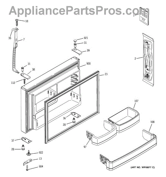 A replacement bottom door cap that restores the finished edge and support at the lower corner of the appliance door. Keeps the door looking complete and helps protect the hinge area from damage. What it does
