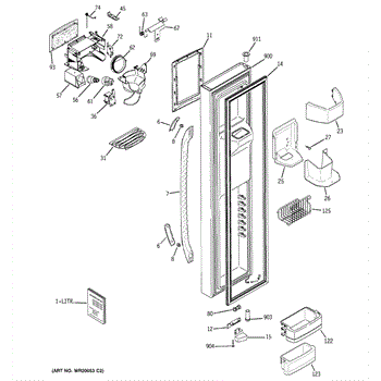 The Door Recess Spring is an OEM replacement part for GE side-by-side refrigerators. It sits within the icemaker door frame to control movement and allow smooth closing/opening of the access point.