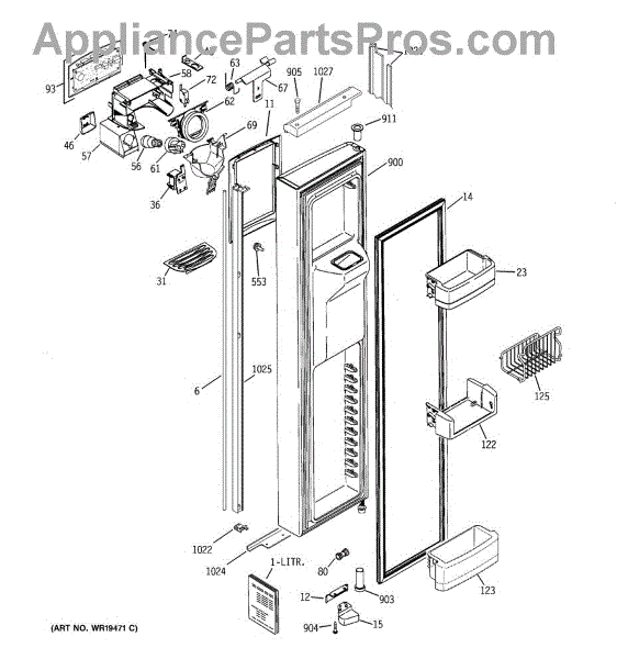 The Ice Door Assembly is an OEM part for GE refrigerators. It is integral to the ice dispenser system, controlling access to the ice chute. This component ensures the efficient delivery of ice cubes or crushed ice when activated and seals off the chute when not in use to maintain the freezer's temperature and prevent frost buildup.